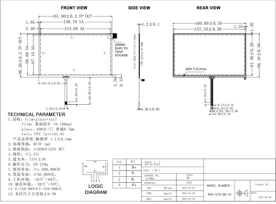 TianFu 10.1 Détails du module à écran tactile capacitif