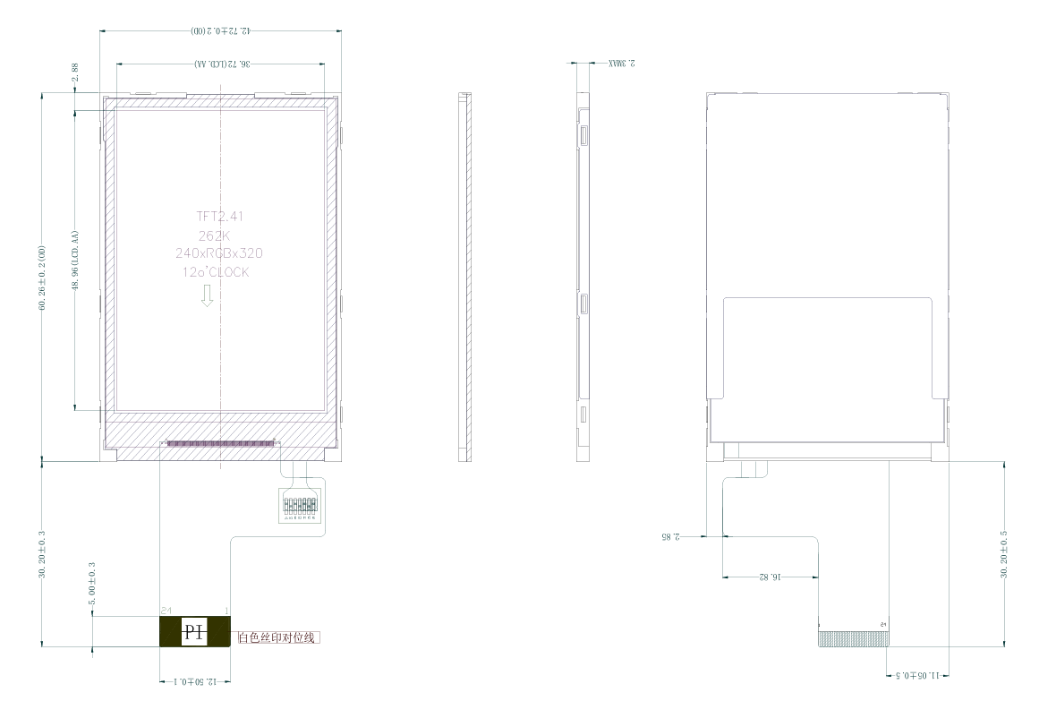 • Petit module d'affichage LCD TFT de 2,4 pouces, normalement blancPetit module d'affichage LCD TFT de 2,4 pouces, normalement blanc
