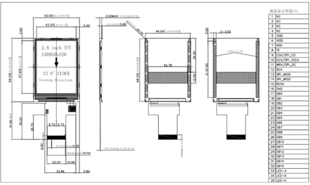 Électronique grand public: résolution 240 × RVB × 320 avec format de données RGB565; Faible consommation d'énergie; Connectez-vous via SPI 3/4 Wire, MCU 8 bits / 16 bits; ≥30000h durée de vie. Vue gratuite IPS. Ce type de module LCD est idéal pour les montres intelligentes pour enfants / machine POS / télécommande de drone (écran secondaire) etc.