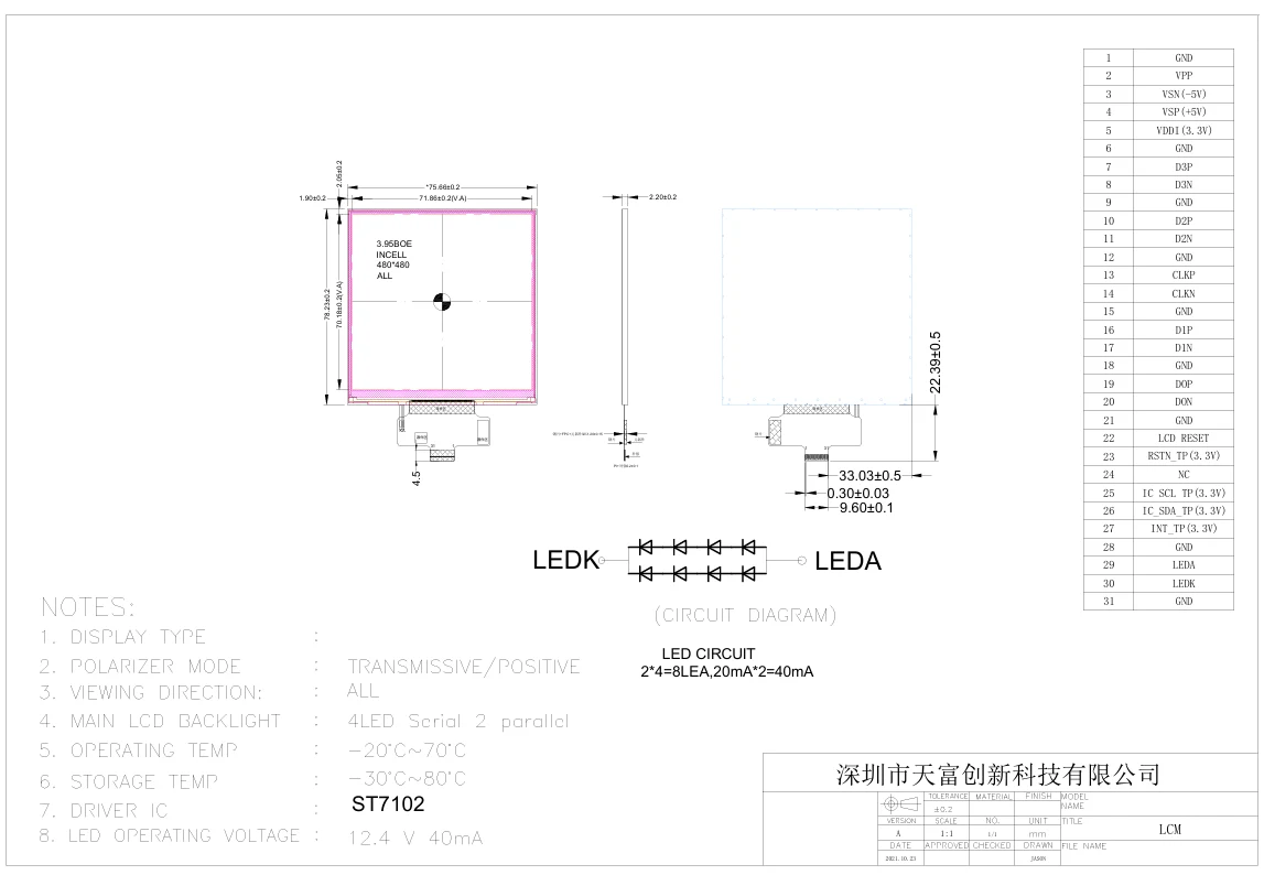 Ce module d'écran tactile en cellule mince et robuste de 3,95 pouces, résolution personnalisée 480 × RVB × 480, offre des performances exceptionnelles, fonctionnant de manière fiable même dans des environnements extrêmes avec une plage de températures de fonctionnement garantie de -30 °C à +80 °C.